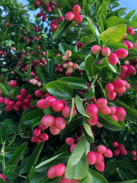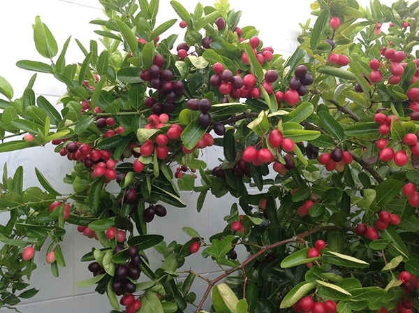Quả Cây Siro mập nhìn mũm mỉm rất thích mắt và đáng yêu. Khi quả chưa chín sẽ có màu tím, lúc chín chuyển sang màu đỏ rồi dần qua đen. Kích thước quả Siro chỉ bằng quả nho.
